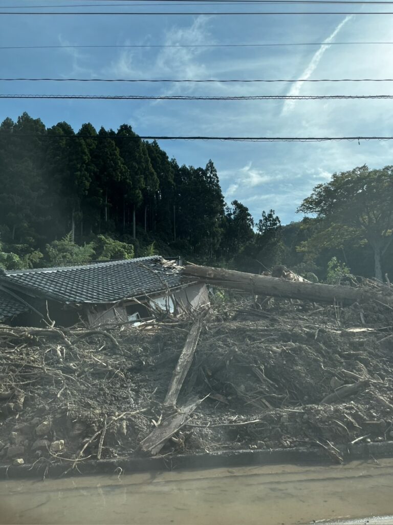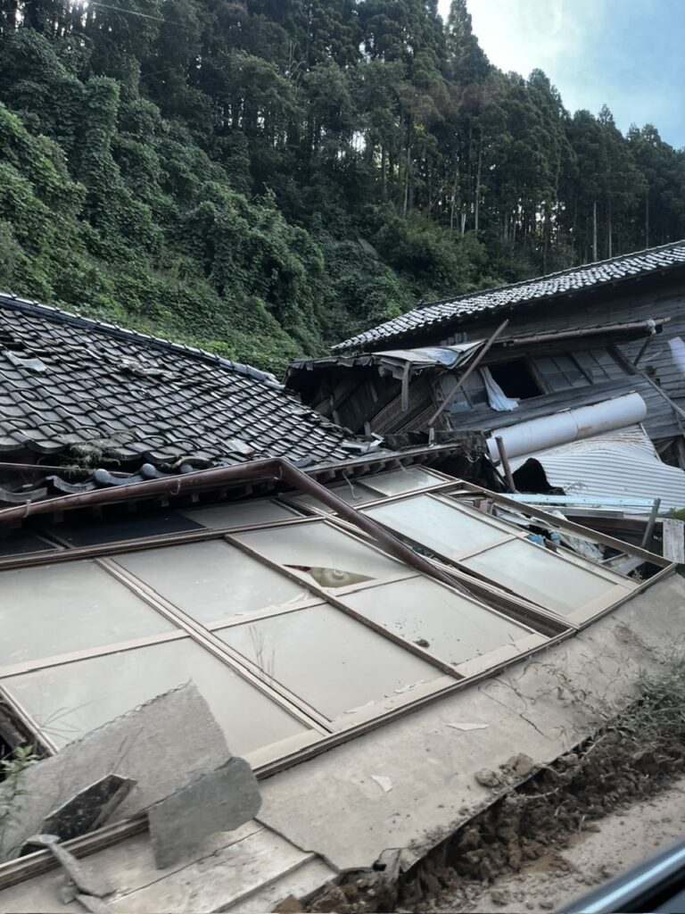 ある程度想定はしていたのですが、現地は2月に炊き出しに伺った際の情景とほぼ変わっていません。倒壊した家屋は全くあの時のままでした。さらに今回の豪雨被害でその時より酷いと感じる場所も多々ありました。土砂崩れに押し潰された建物が何軒もありました。完全な復興はとても2年や3年で出来るものではないという印象です。
